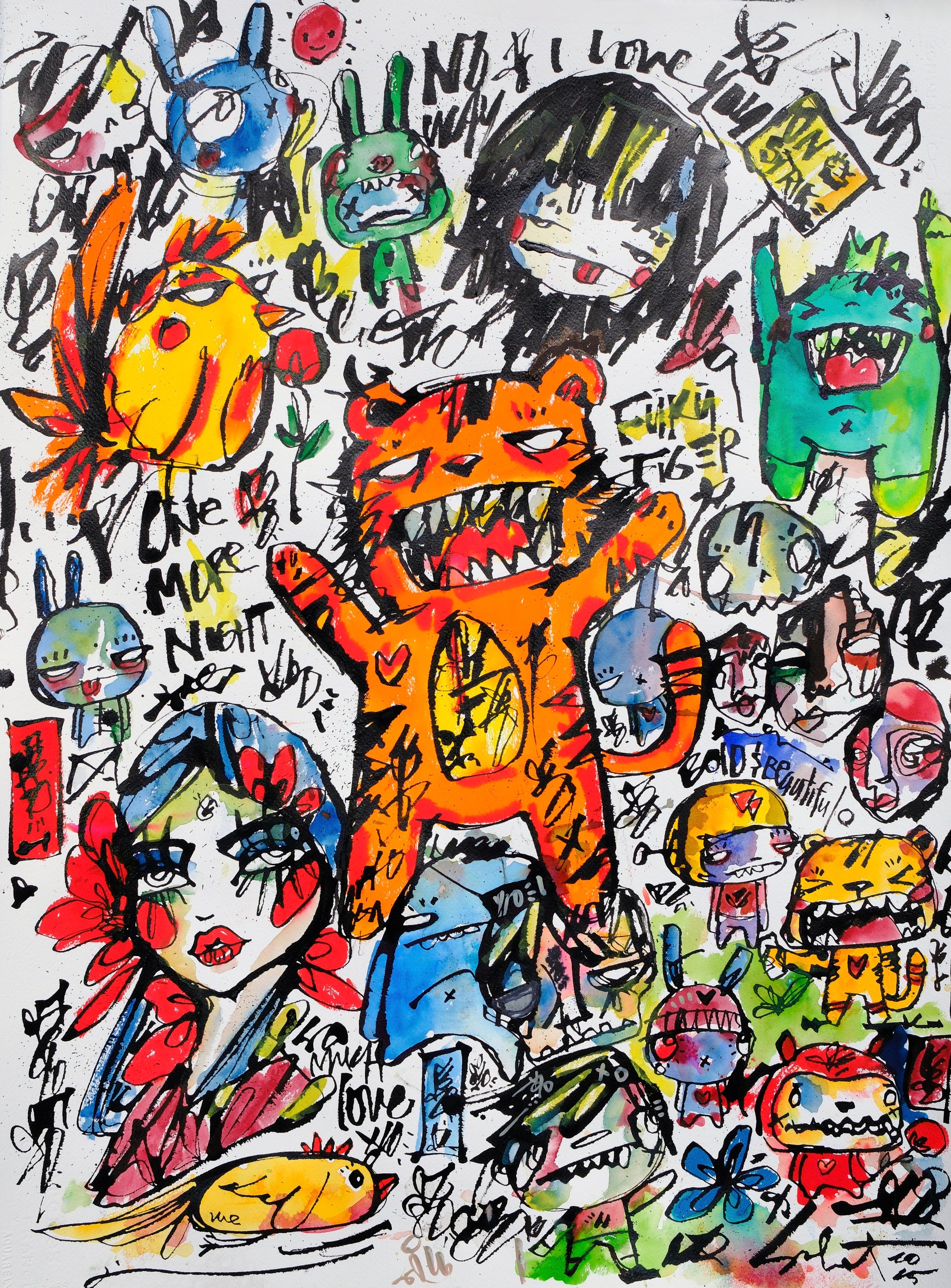 I love this little tiger.. He shows up in alot of my work these days. Inspired by the hat i got in Tokyo! I just love it!