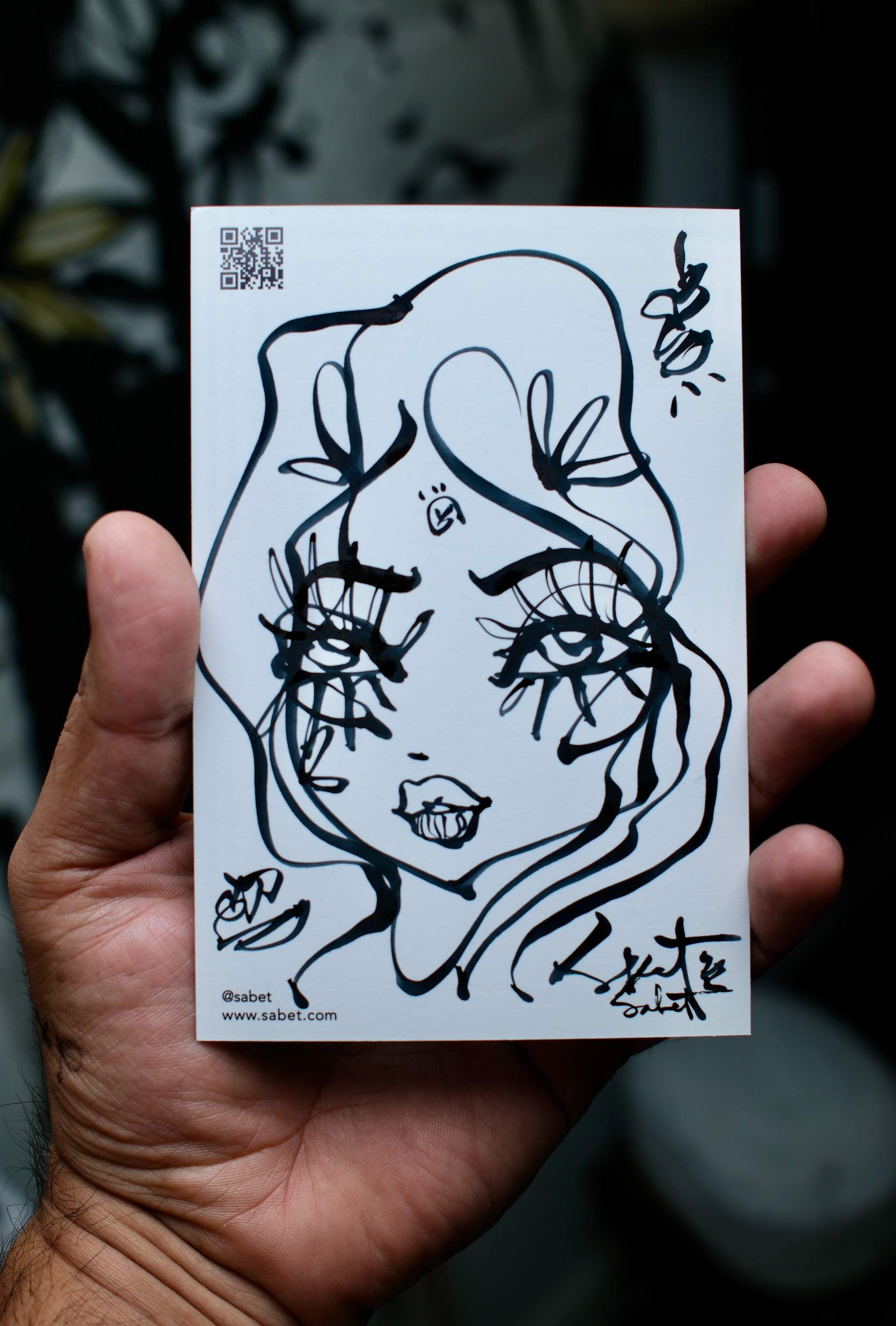 Each Mini Original is a hand-painted, one-of-a-kind work of art — raw, expressive, and alive with energy. In the absence of color, every stroke becomes pure vibration — a transmission of emotion, movement, and spirit. These black-and-white pieces capture the essence of life’s rhythm, where simplicity amplifies power and presence. Each one carries the unmistakable pulse of Sabet’s creative energy.